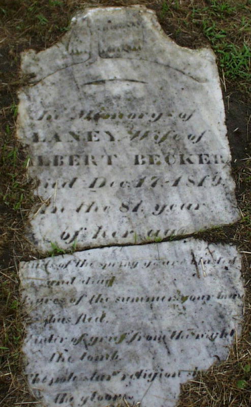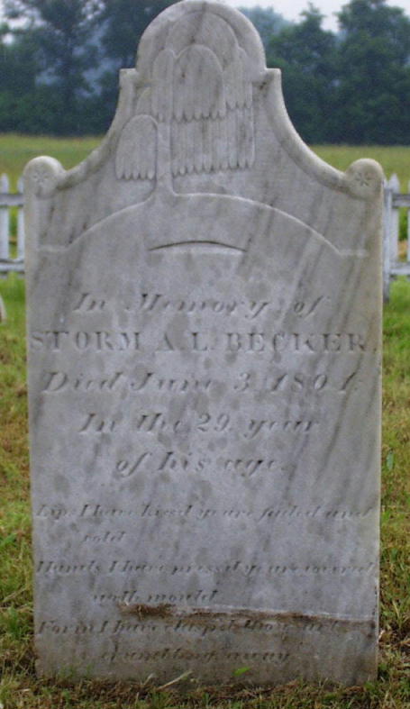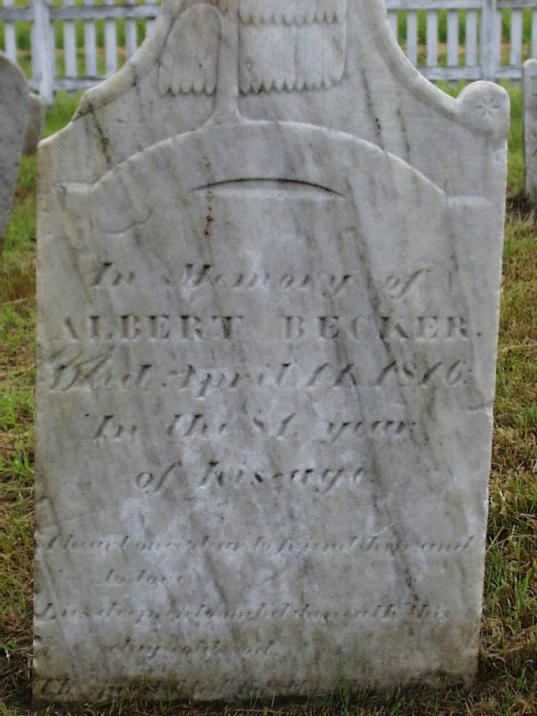 The gravestone of (Johan) Albert Becker The gravestone of Albert's wife, Magdalena (Laney) The gravestone of Albert & Magdalena's son, Storm A.L. Becker The gravestone of Storm's wife, Elisabeth Clute