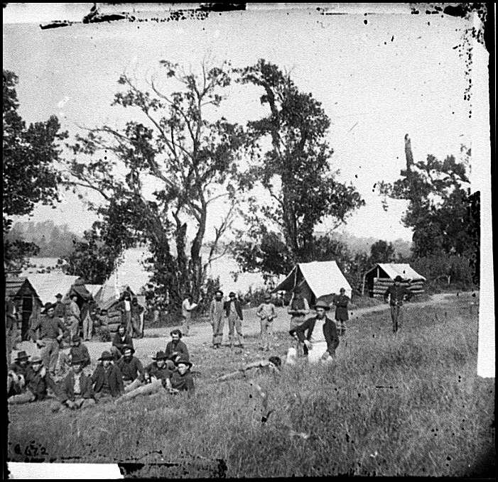 Union soldiers camped along the Tennessee River (Library of Congress [cwp 4a39762]) Note: Grateful acknowledgement is due to the Adjutant-General of the State of Illinois for the images of the 100th's battle flags.